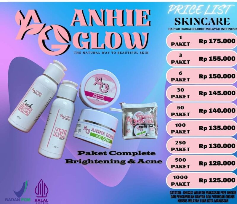 - Margin Keuntungan Menarik: Anhie Glow memberikan margin keuntungan yang kompetitif bagi agen, reseller, dan distributor mereka. Dengan mengambil bagian dalam bisnis Anhie Glow, Anda memiliki kesempatan untuk meraih keuntungan yang menjanjikan.